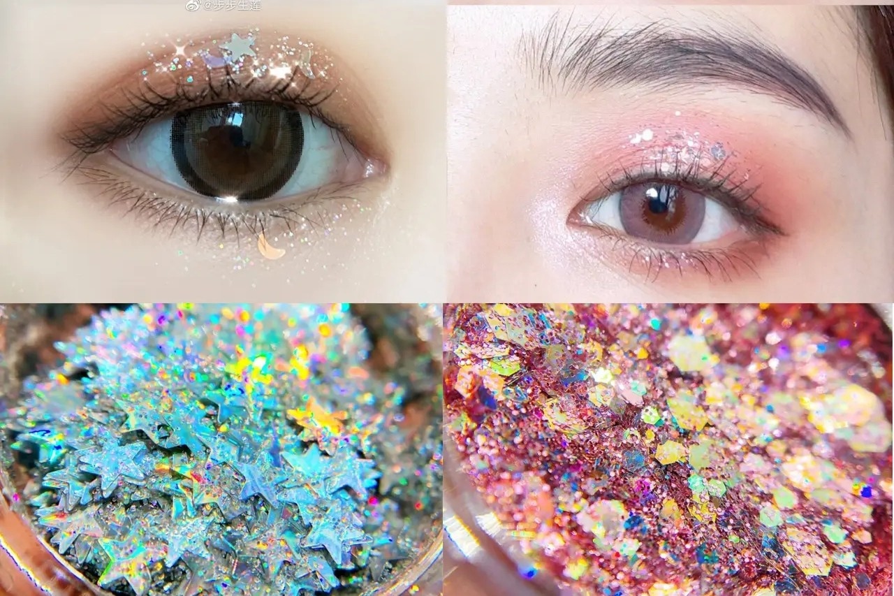 閃粉眼影是閃粉化妝品中應用率極高的一種產物。有些女生甚至在日常的上班妝容中也貼上閃粉。閃粉無妨增添美感指數,確實會讓人耳目一新。但是閃粉眼影的貼合性相對較差,因此在運用之前用眼部底膏打底,這樣能夠有效預防閃粉脫妝。